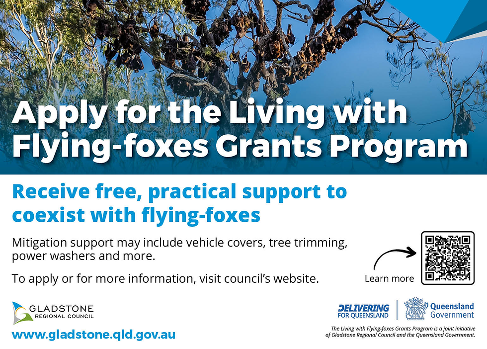 Council has secured funding from the Queensland Government to help residents and businesses better coexist with flying-foxes. The program aims to mitigate and reduce the impacts of flying-fox roosts on the community while ensuring the long-term conservation of these important protected species.